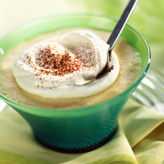 Au moment de servir, ajoutez une cuillère de crème épaisse et poudrez de cacao.