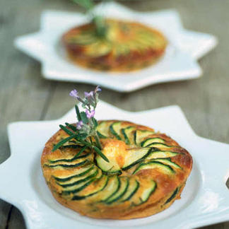 Laver et essuyer les courgettes, les couper en très fines rondelles. Battre les oeufs dans un bol avec la crème, le lait, le thym émietté et l'ail finement haché, saler.